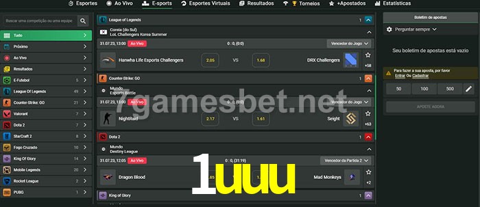 A aposta 1uuu oferece aos jogadores a experiência mais conveniente de apostas em eSports!